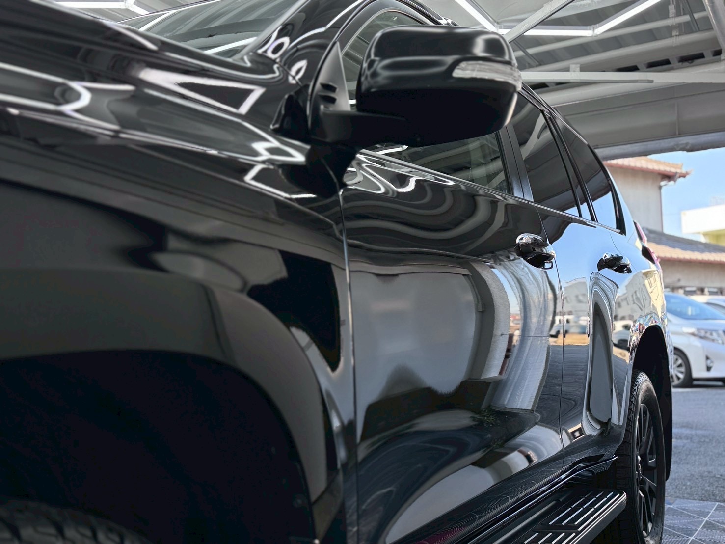(トヨタ)ランドクルーザープラドへのコーティングのご依頼です。このプラドは新車時に施工をさせていただきましたが、今回3年が経過したことで新たに汚れ除去と、再度コーティングの施工をさせていただきました。